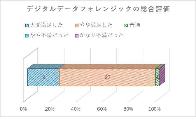 デジタルデータフォレンジックの総合評価は非常に高いことがわかりました。