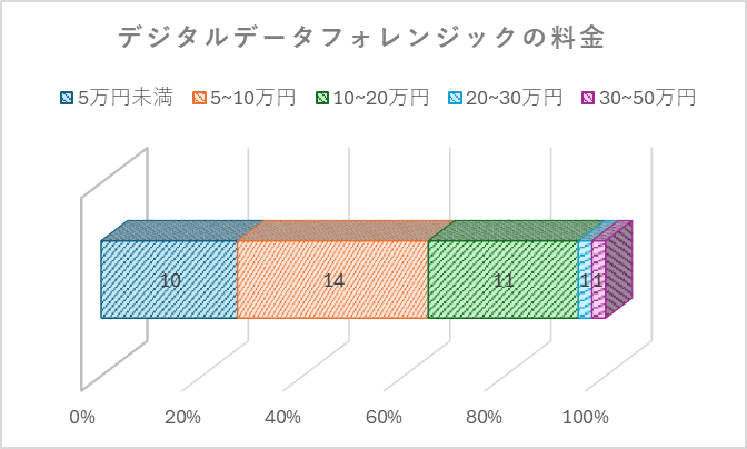 デジタルデータフォレンジックのデジタル遺品調査の費用は、ピンキリですが、多くの方が20万円以内にすんでいることが今回の調査でわかりました。