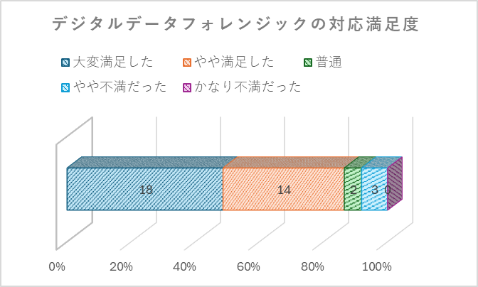 今回の調査では、デジタルデータフォレンジックの対応が親切、丁寧という評価が多く寄せられました。