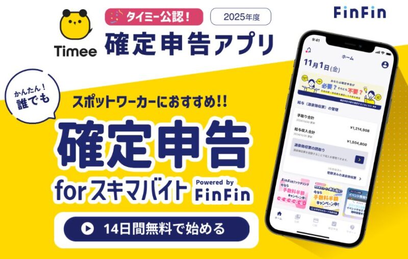 比較的規模が小さい個人事業主、フリーランス、副業者、スキマバイトは、会計ソフトや高い確定申告アプリを利用する必要性に乏しいため、FinFinのように安い(無料でも使える)確定申告アプリはピッタリです。