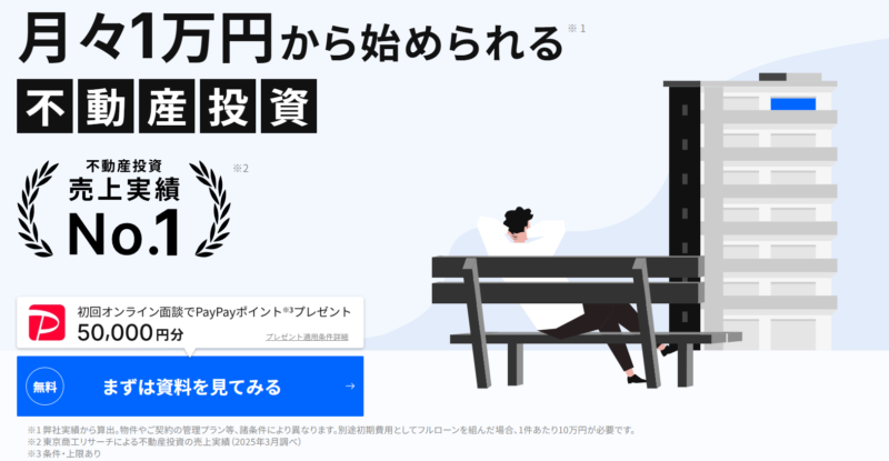 ・都市部の物件に特化した不動産投資サービスとして広く普及している(不動産投資 売上No.1)