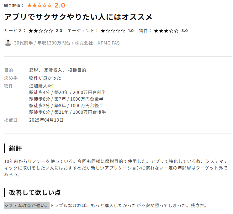 リノシーの公式ページにもお客様(オーナー)の声が沢山ありますので、もし気になる方は見てみるとよいと思います。