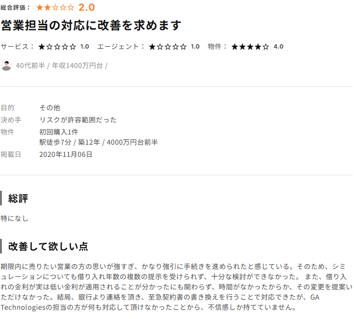もっとも、「無理な営業がなかった」という良い口コミも目立ちましたので、営業に関しては担当者次第というところもあるようですので、そこまで心配する必要はないでしょう。