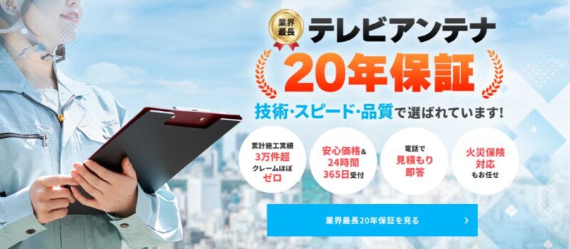 料金の面、実績の両面で間違いなくオススメできるアンテナ工事業者です。