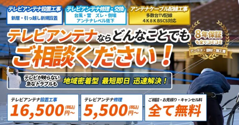 料金の面、実績の両面で間違いなくオススメできるアンテナ工事業者です。