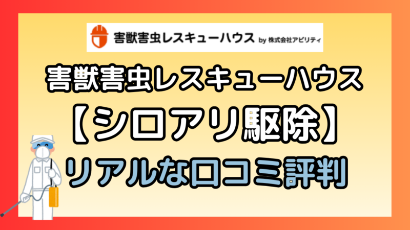 害虫、害獣駆除で有名どころの大手の一つ(株)アビリティ。 アビリティは、「害獣害虫レスキューハウス」というサイトでシロアリ駆除や害獣駆除などの依頼を受け付けています。 アビリティ公式HPはこちら【害獣害虫レスキューハウス】 では、アビリティが... -