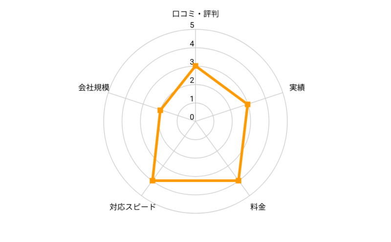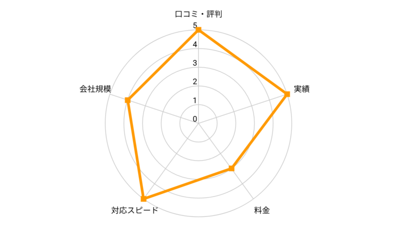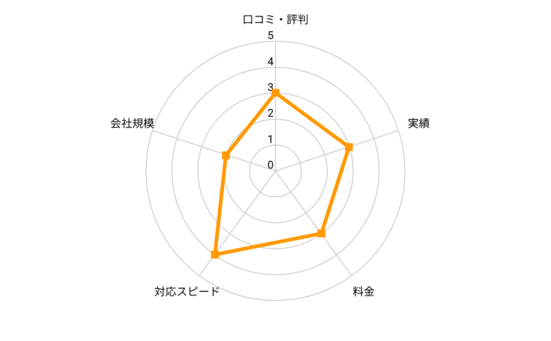 | 口コミ 評判 | 実績 | 料金 | 対応 スピード | 会社 規模 |