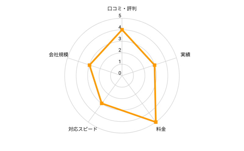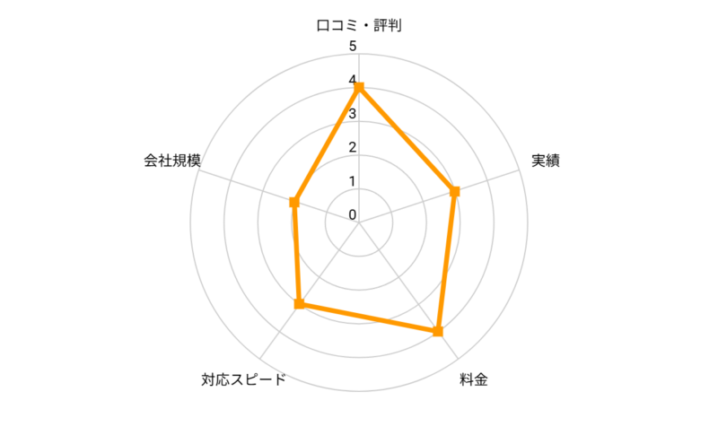 | 口コミ 評判 | 実績 | 料金 | 対応 スピード | 会社 規模 |