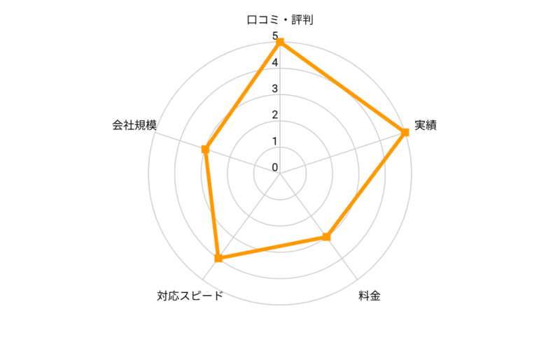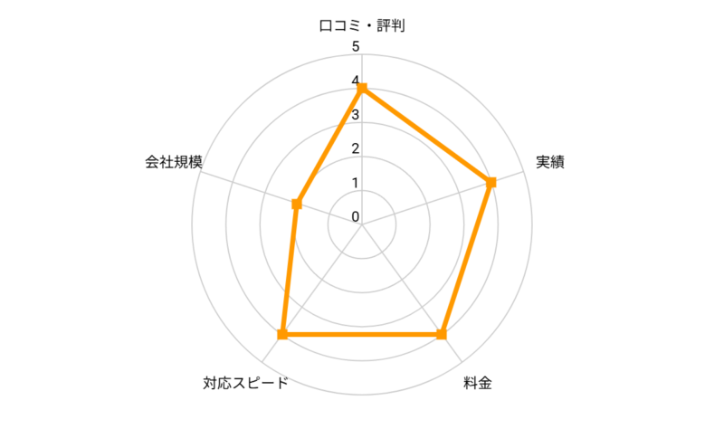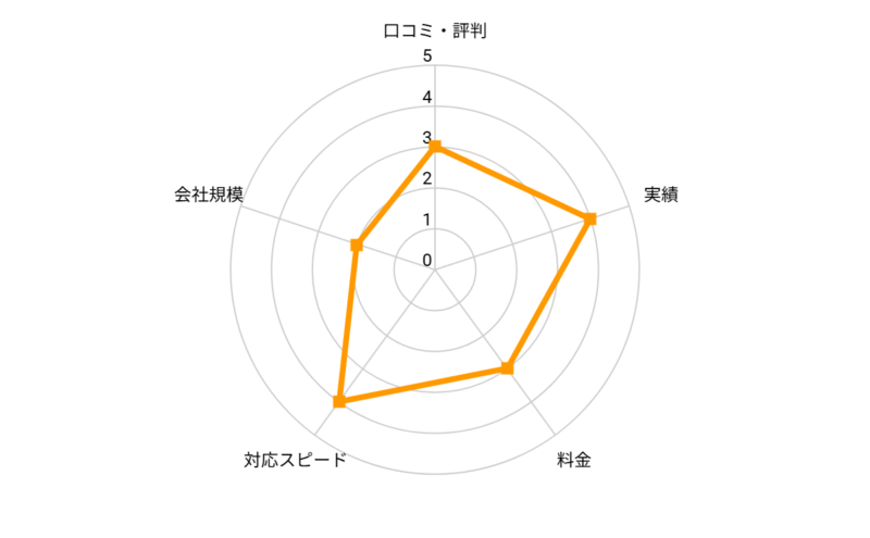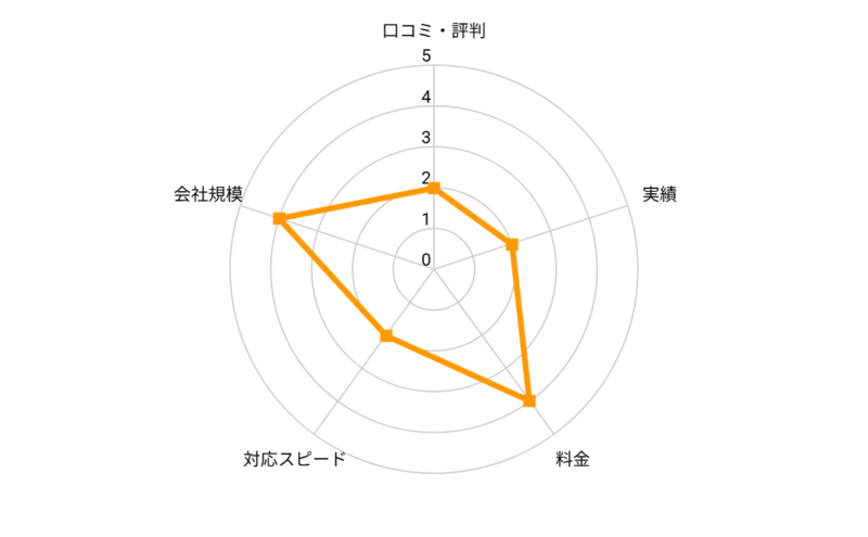 | 口コミ 評判 | 実績 | 料金 | 対応 スピード | 会社 規模 |
