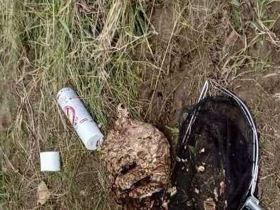 スタッフから説明がありますが、駆除中は巣を守るために蜂が飛び交うので家の中に蜂が侵入しないように窓などは閉めておいてください。