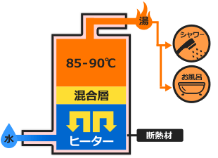 上の図は電気給湯器の仕組みを絵で表したものです。